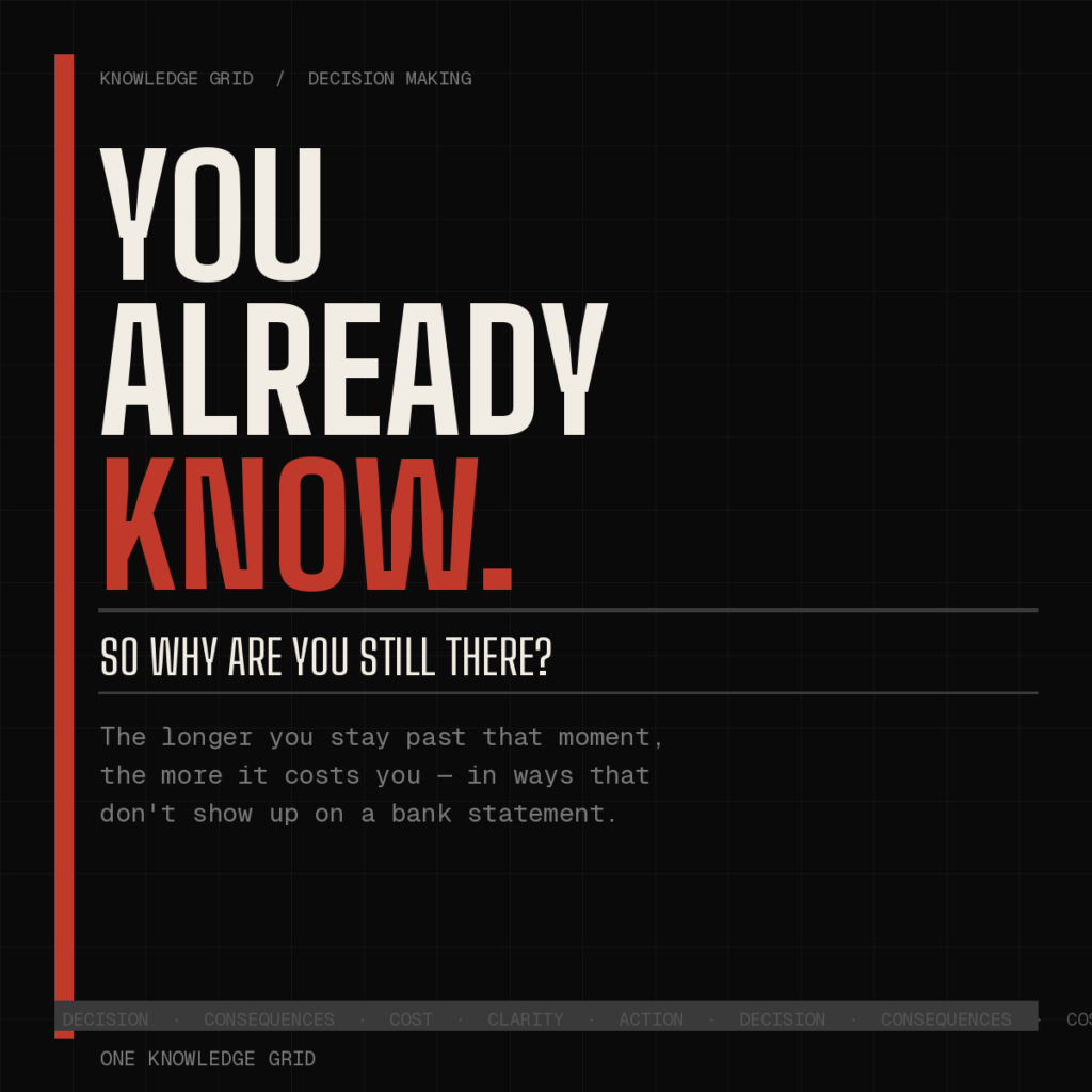 But you’re still there. And the longer you stay past that moment, the more it costs you — in ways that don’t show up on a bank statement but are very, very real.